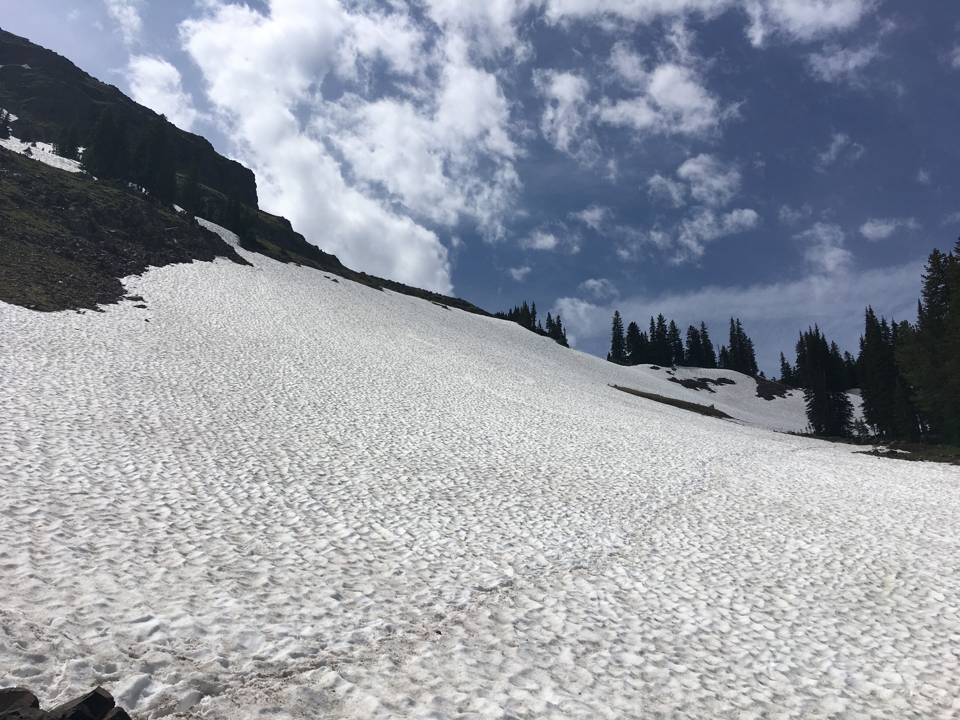 We arrived at the trailhead at 9:30AM and returned to the car at 5PM, at which point it started dumping, complete with visible bolts of lightning and nearly subsequent thunder. We did manage to avoid all the rain though (with a quick sprint to the parking lot at the end) and the weather was lovely most of the day!