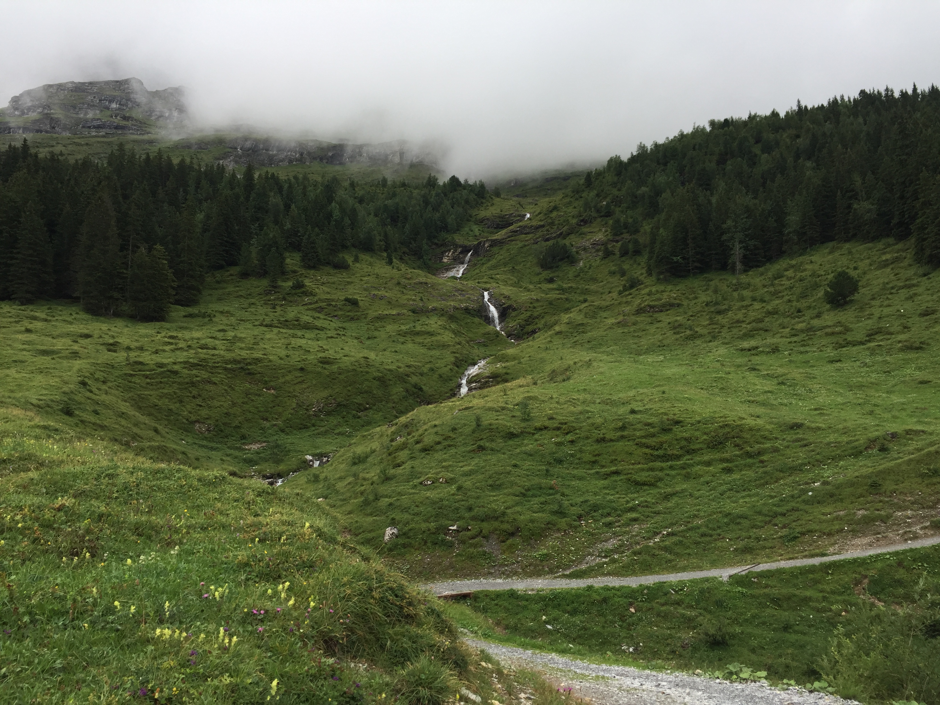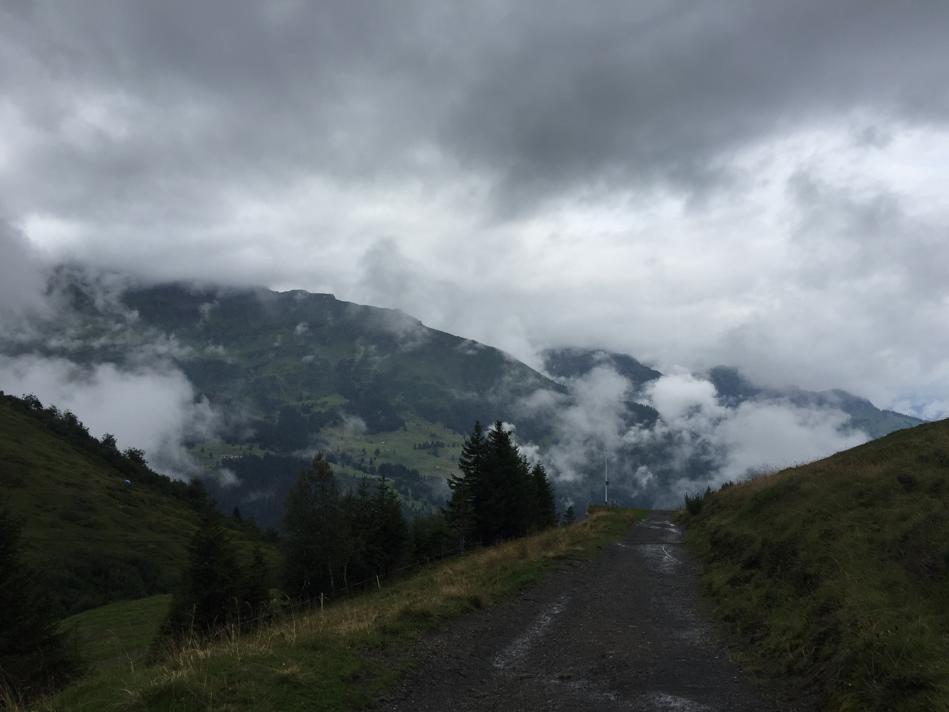 While I wouldn’t necessarily recommend hiking around Switzerland in poor weather (it really defeats the purpose, which is seeing stunning vistas), the fog on the landscape was very dreamy and I couldn’t stop myself from singing The Misty Mountains for most of the day.