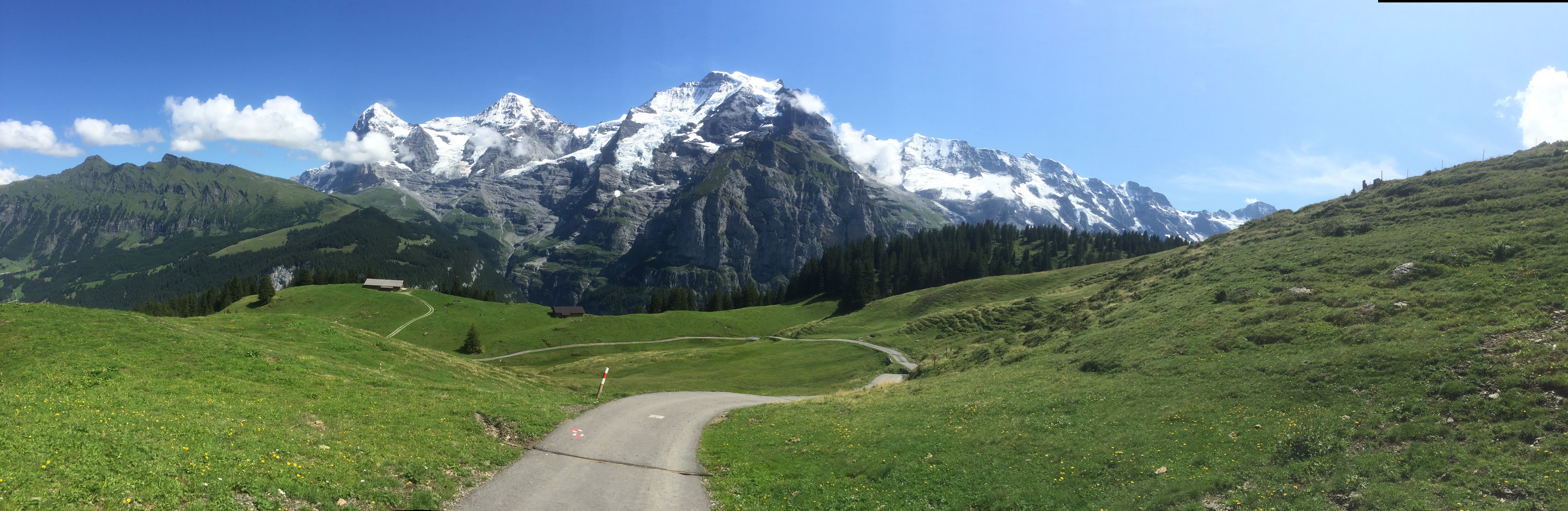 From there, I took the cable cars back to Murren and opted for an “easier” hiking day of only 7 hours (though this included some breaks and was mostly downhill), hitting the trails around 1PM. From Murren, I walked up to Allmendhubel, a great view and picnic spot (you can also take a cable car up). The walk up to Allmendhubel was nice but somewhat unremarkable (beyond the standard gorgeous view) but the walk back down I took a path on the north face and was blown away by the view of the valley and the mountains. This was one of my favorite parts of the day and I sat down on a bench, uninterrupted, drank a beer, and admired 360 degrees of alpine splendor.