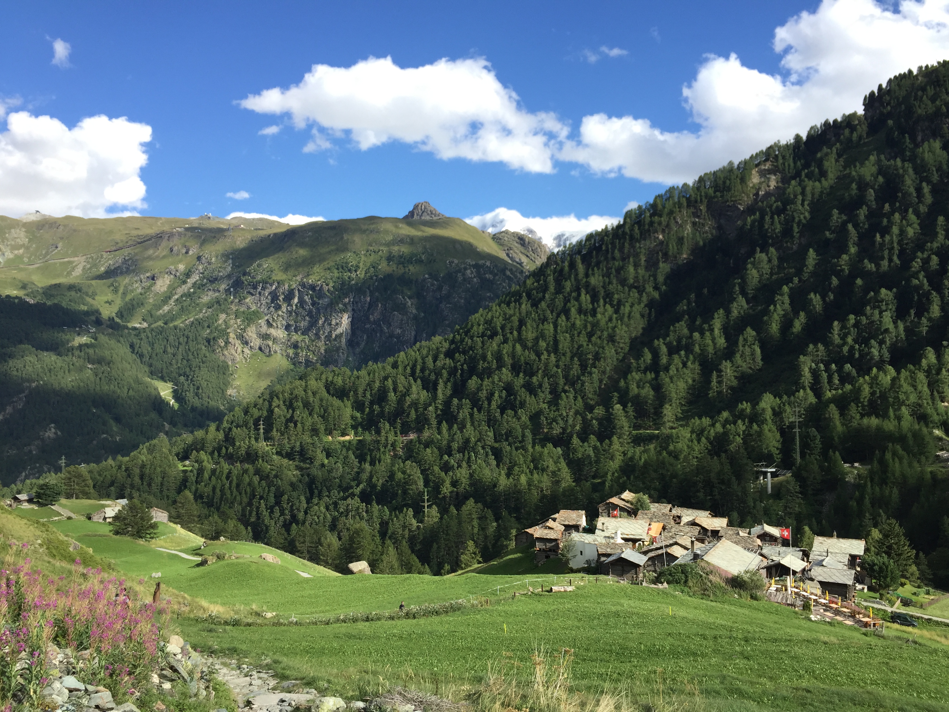 In addition, you walk by the hamlet of Zmutt, which was friggin charming. I don’t really know what I expected with the word “hamlet” but it equated to a dozen very old cottages in the middle of the valley on a hill, surrounded by nothing. The cottages in this area were all very quaintly fashioned and most had slate roofs from the ample material in the valley, shingled in diamond pattern that reminded me of dragon scales.