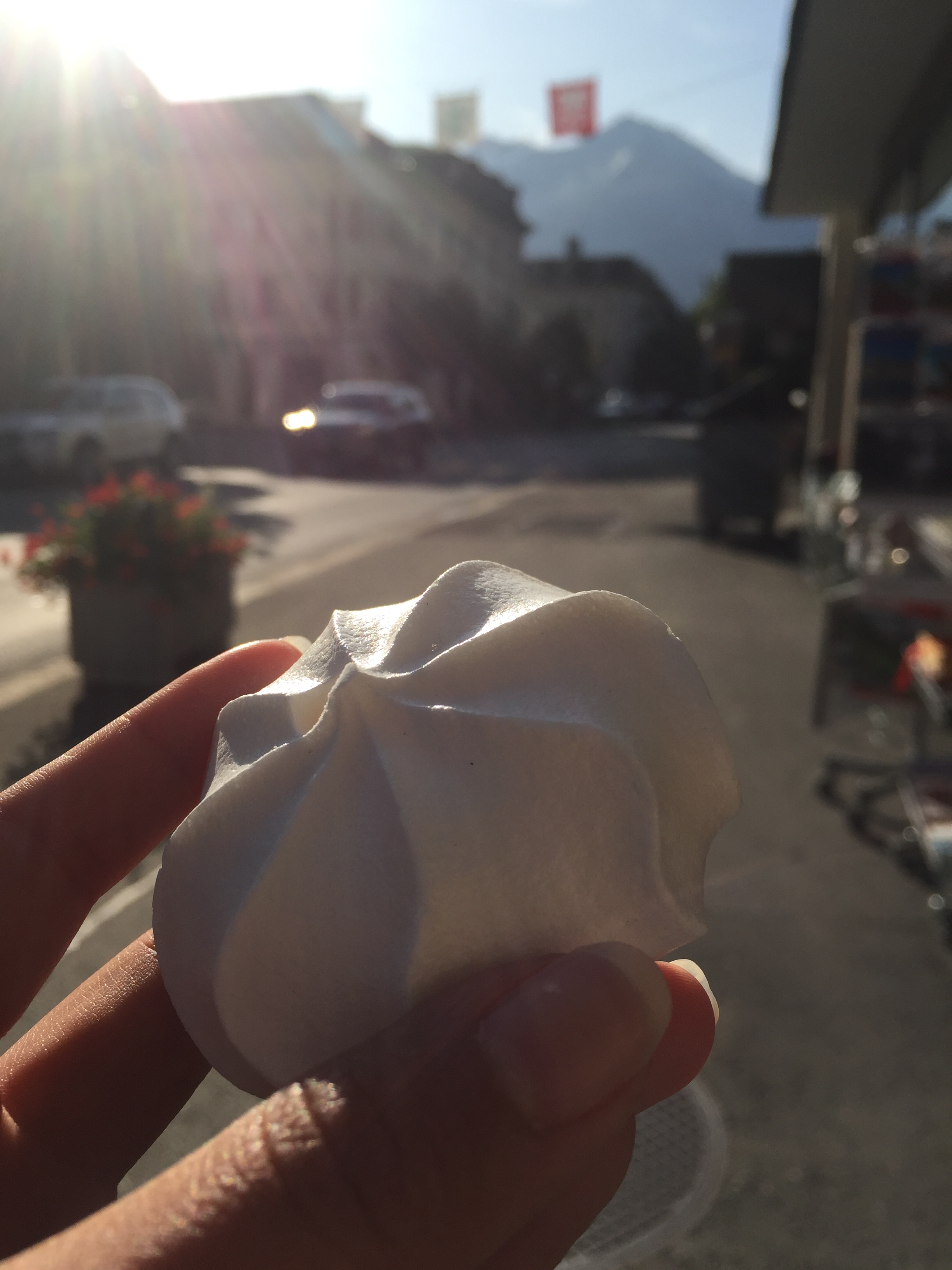 I did wake up early (prompted again by the dulcet sounds of the girl talking with her husband at 6AM) and decided to start by day by taking the train to Meringen, birthplace of the meringue and home of Reichenbach Falls, as featured in Sherlock Holmes. It turns out this is the only two things going on in Meringen, so I had a meringue for a franc at 9AM and then hopped right back on the train.