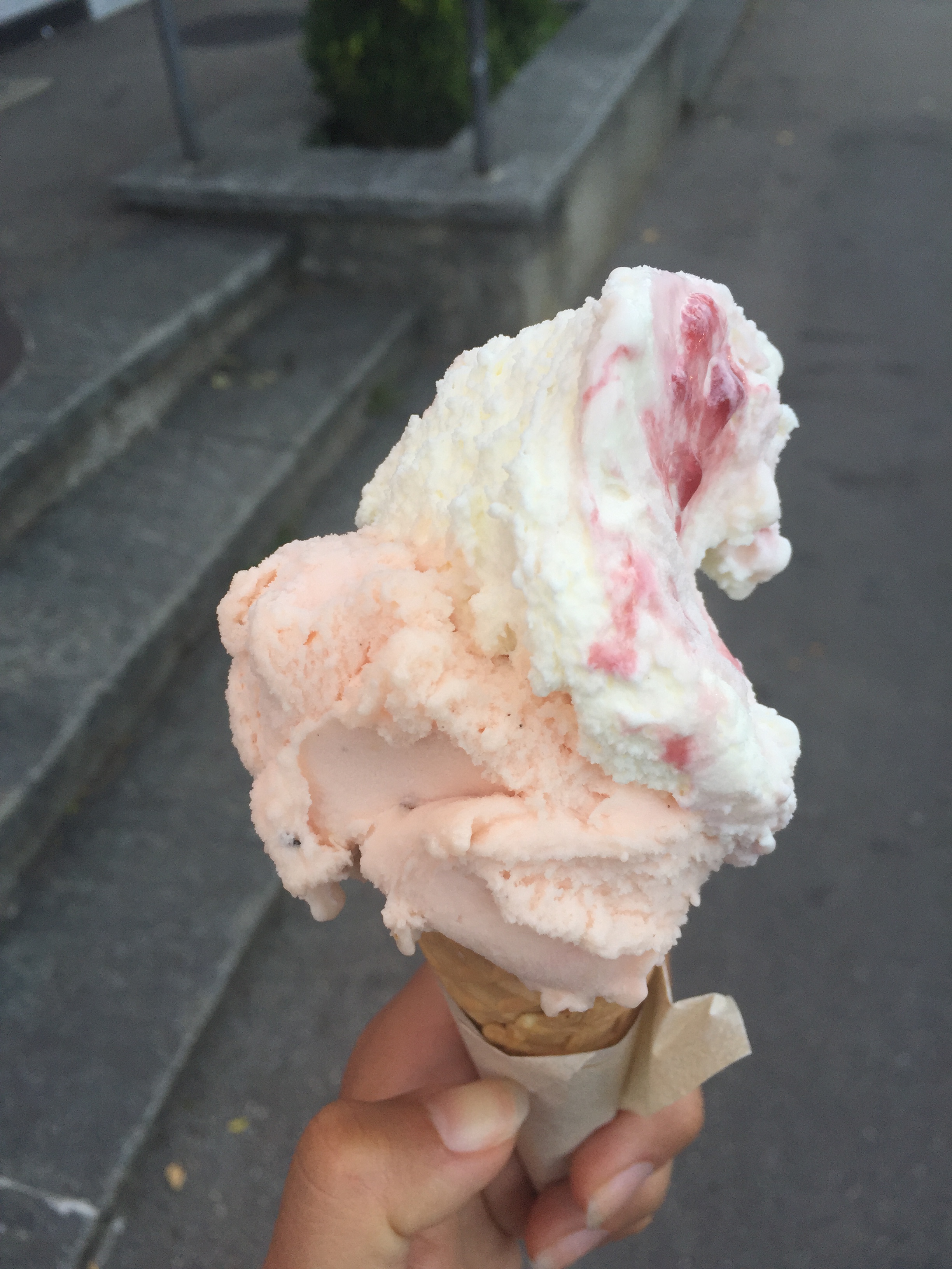 In Bern, I wandered through the city, looking at the outsides of buildings, and walked along the river, watching kids and adults get into the river, let it pull them downstream, and then re-emerging from one of the many sets of steps to walk back upstream and do it again. Sprinkled along the many green spaces and waterways, there were little pop-up summer bars with seating. I grabbed some gelato from an absolutely amazing place, Gelateria Di Berna, with creative flavors and got two scoops – one of a more standard amarena (cherry) gelato and one of grapefruit, which was SO GOOD. It was a weird flavor combo but both types were independently excellent! After I ordered, I saw their banana basil flavor and was sad I didn’t try that.