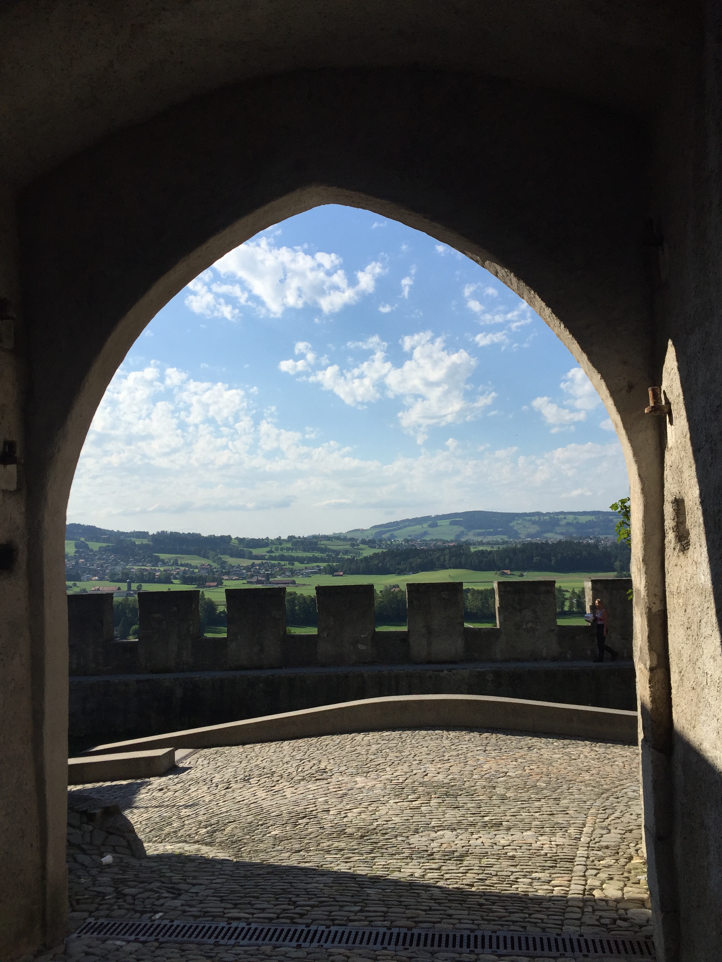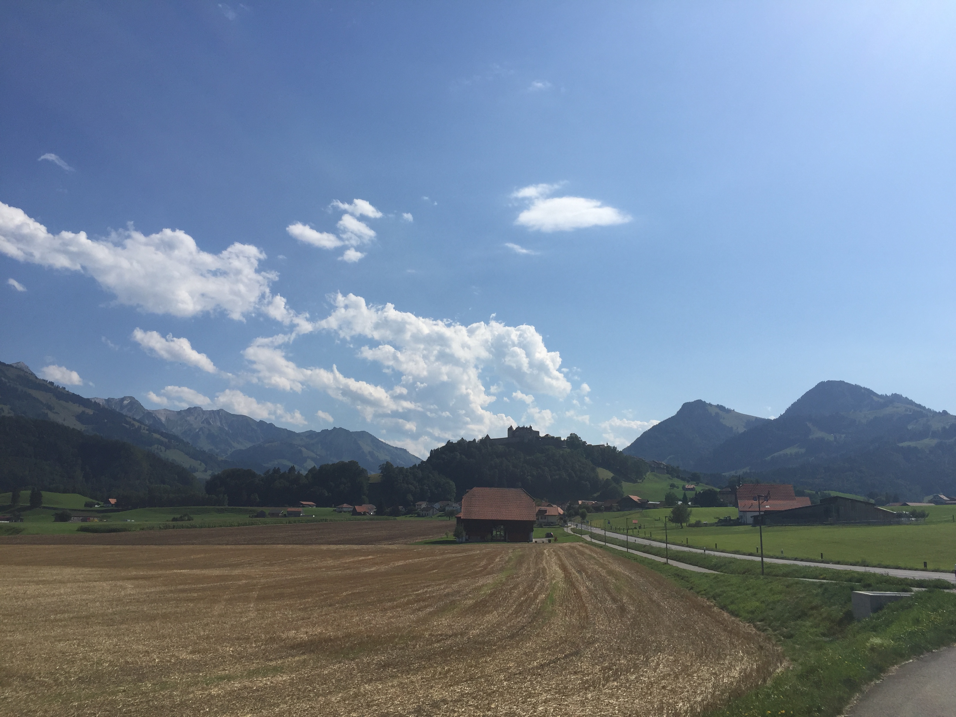From there, I kind of said screw it with going to Murten and south to Avenches (where there is a small Roman amphitheater) because it was afternoon and instead went straight to Broc, where I arrived at 3PM and attempted to go to the Callier chocolate factory but learned there was a 2 hour wait (though it was covered by my travel pass) – a good reminder to plan ahead. Even the prospect of free chocolate samples couldn’t keep me stationary in a tiny factory town surrounded by corn fields for two hours so, with the limited public transport in the region, I decided to hoof it to Gruyeres, an hour walk away.