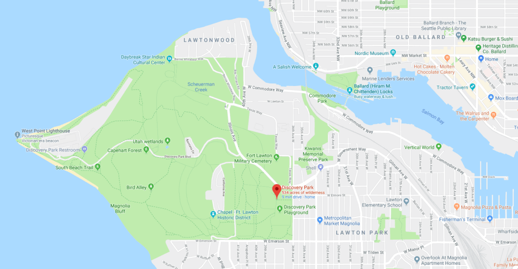 Yesterday, I took a lovely morning run down in Discovery Park! Discovery Park is the largest public park in Seattle at 534 acres and contains 11.81 miles of walking trails (reference: Wikipedia).