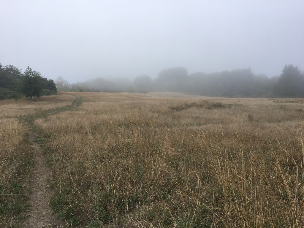 The weather was quite nice for the first part of my run but turned heavily misty by the time I hit the bluffs, so the grasslands were all very romantically misty.