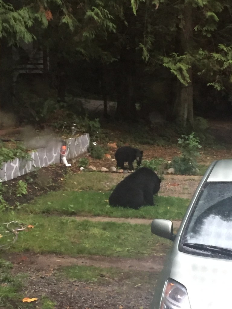 That night around 6, back at the tiny house, we even saw a bear cub and mama bear that we’d been warned about by the host, and they were super adorable! They came very close to the house and we snapped some ok pics of them.