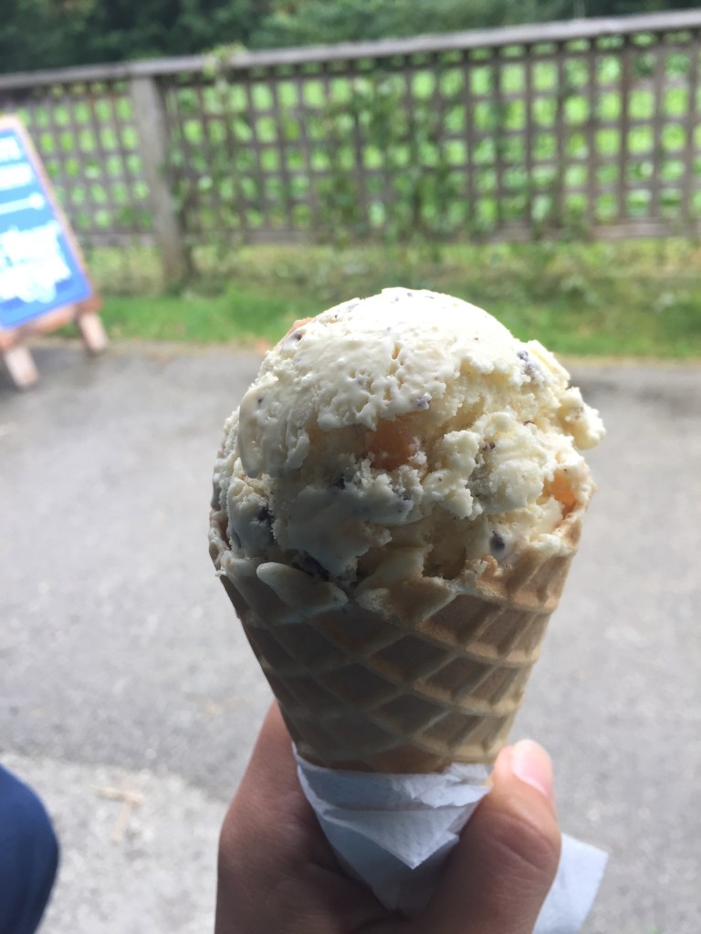 After the park, I insisted on ice cream, so we stopped by The Folly Artisan in town (still Roberts Creek) and I sampled the Cardamom Strawberry, Vegan Black Currant Chip, and Grapefruit Marmalade Chip (my final choice, which tasted just like those orange chocolate wedges).