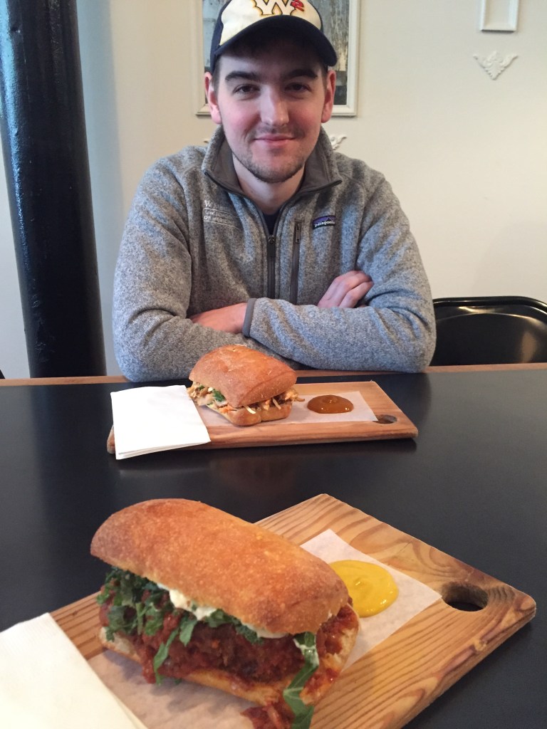 Tom got the buffalo chicken sandwich and I got the meatball sandwich, which were both super tasty!
