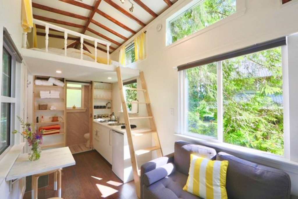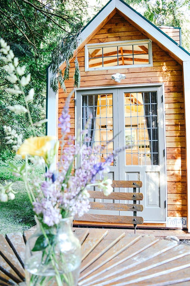 I’m a bit tardy (as usual) with my post but two weeks ago, Tom and I spent a week out of town together on the Sunshine Coast, west of Vancouver, BC. We’ve been discussing tiny house living for a while, so this was a bit of a test run for us and overall we found that we really enjoyed it except for the open stair/ladder leading up to the loft that was directly over the place we put drying dishes, leading us to sprinkle dirt from our feet onto our clean dishes – yuck. Generally though, we didn’t mind being in the small space and it was really cozy, particularly with the (somewhat loud) rain on the roof throughout the week.