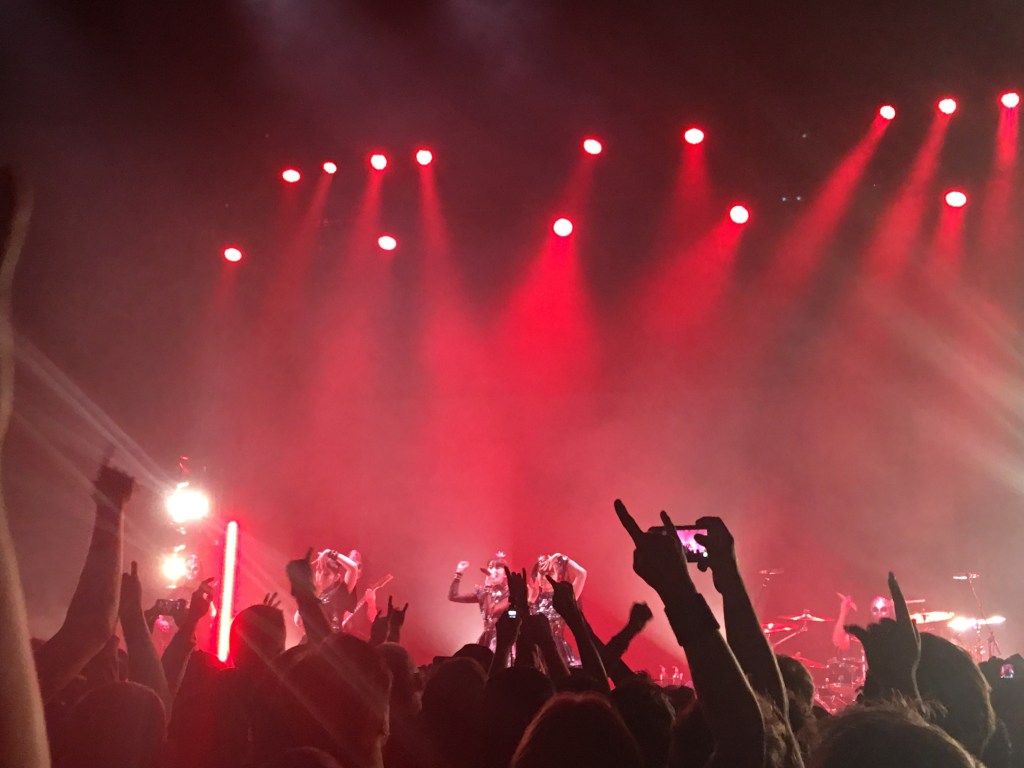 The first opener was Starkill, who very much embodied what you might imagine a metal band to look like, complete with the X-treme eye makeup and goth aesthetic. They were pretty good (if not my usual thing) and I was pretty wowed by the the band’s headbanging (even emptying water bottles into their hair for the spray). I’m such a metal noob.