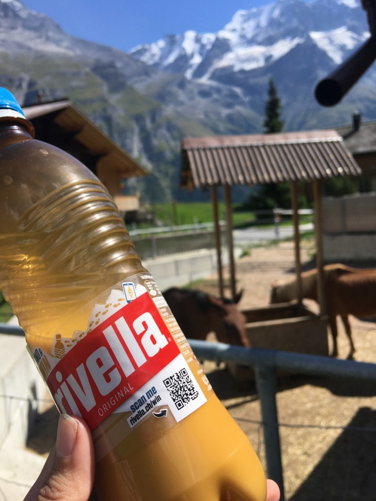My favorite part of this hike is walking through Gimmelwald, which is a small town just below Murren. It has several self-serve dairy fridges where you put money in a tin for milk, cheese, sausages, and even fruit cake. I got some milk for 1 CHF and a very dense fig filled fruitcake that I nibbled on for the next few days. I also love grabbing a drink at Hotel Pension Gimmelwald, which is where you can find Schwarz Monch Schwarzbier, a super delicious Swiss black lager.