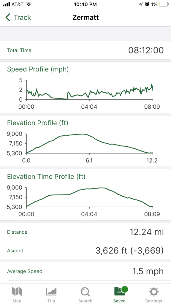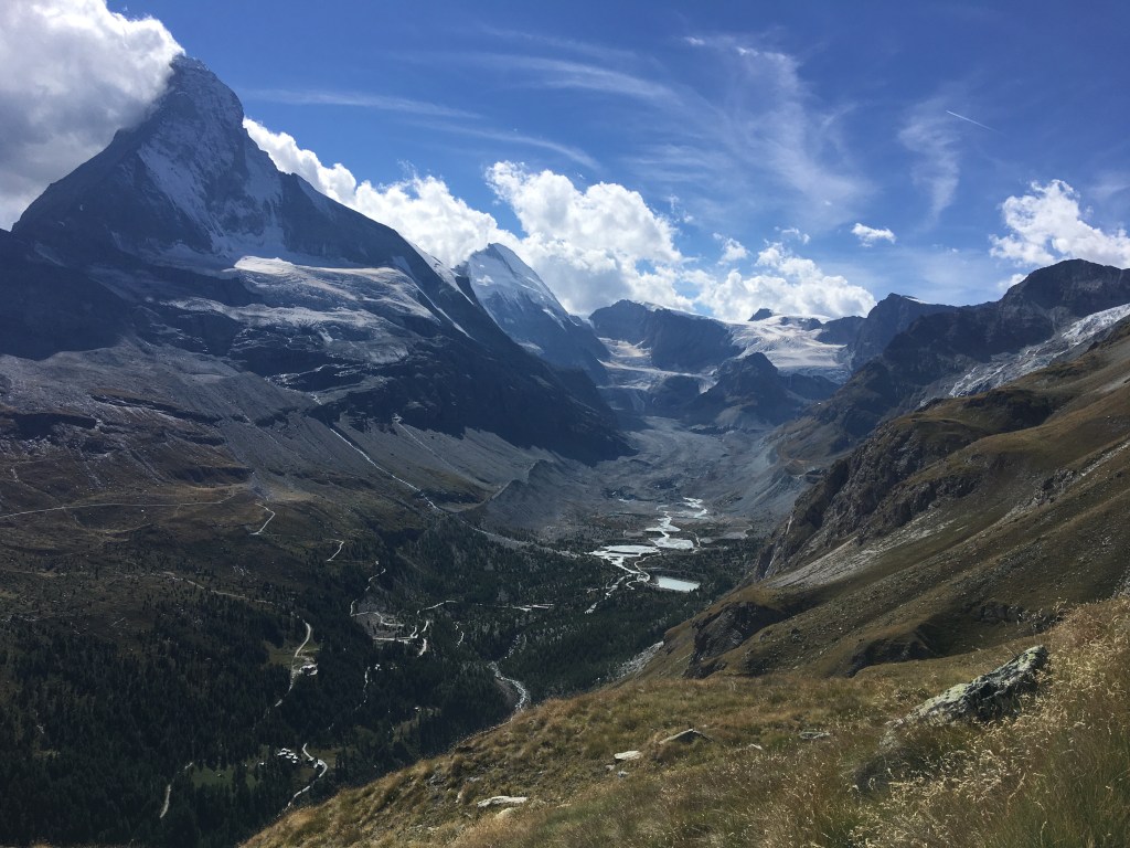 This was our one guaranteed nice weather day in Zermatt, so we took advantage of it to do a long hike along the Hohenweg Hohbalmen to get some Matterhorn views! It took us 2.5 hours to take the train the Zermatt (3 legs) and the hike took us 8 hours in total (including a 1.5 hour break) and was 12 miles with 3,600 ft of elevation gain.