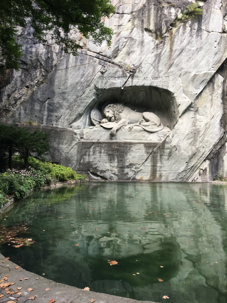 When we returned to Lucerne, I walked along the city wall and climbed the towers, which affords some great views of Lucerne, and leads to the Lion of Lucerne – an impressively large monument to the Swiss Guards killed during the 1792 French Revolution carved directly into the sandstone quarry. The lion is next to the Glacier Garden of Lucerne – a rather odd museum reviewing in part the geological effects of glaciers, as well as some rather philosophical musings on the nature of man and a really trippy house of mirrors.