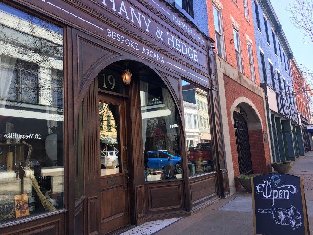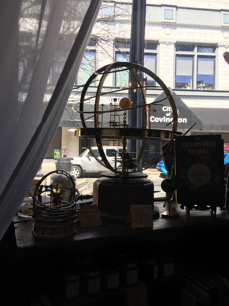 After our morning treat, we walked through downtown to Covington, which is a 30 minute walk from OTR, across the Ohio River. In Covington, we hit up Lil’s Bagels for a bigger breakfast, Bircus Brewing for our first beer of the day, and then Hierophany & Hedge, which is my favorite store in the area. Hierophany & Hedge is this killer dark academia magic shop with lots of spell books, candles, and spell components in jars on the wall. It’s definitely worth a stop if you’re in the area but you need to check the website because they don’t keep regular hours.